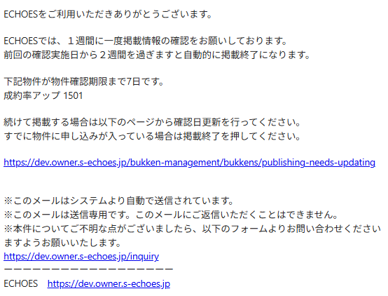 💡掲載終了の2週間前から、確認日更新の案内表示が出ます。