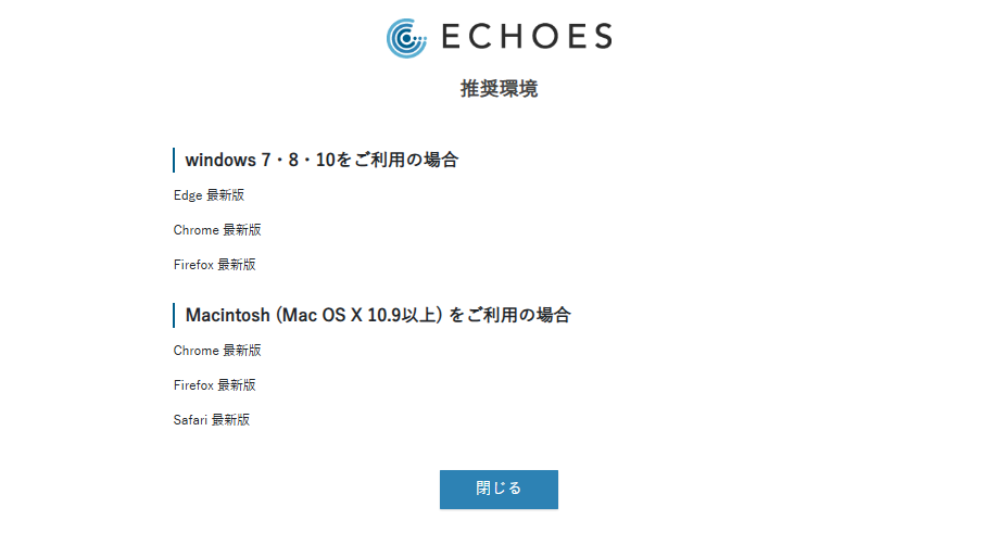 推奨環境の詳細につきましては、下記ページをご確認ください。